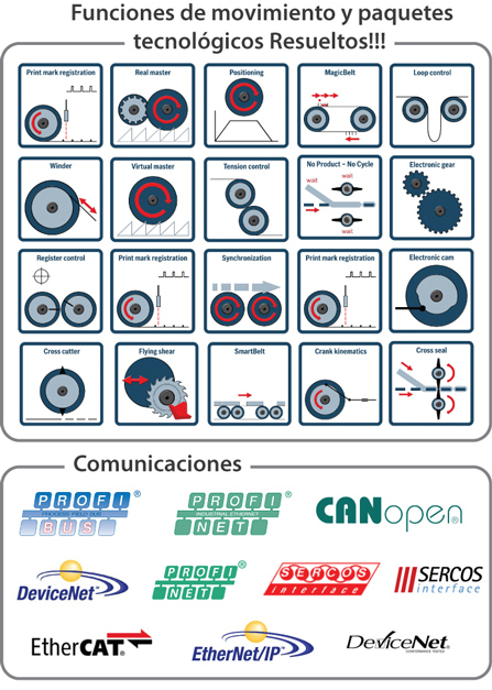El sistema integra control de movimiento “Motion Control”, con funcionalidades de PLC, todo en un solo Drive!!