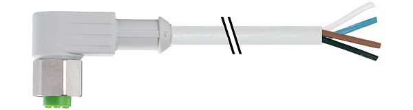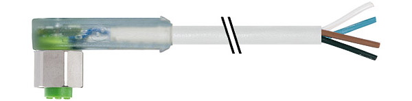 » Hembra 90°, 4-polos, con extremo con cables abiertos, con 3 x LED.