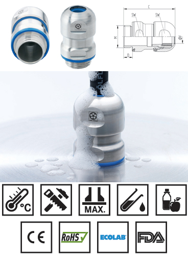 Los SKINTOP® HIGIENE (-R) son los nuevos prensa cables de Lappgroup ideales para ambientes limpios. El diseño higiénico innovador impide que ingresen líquidos o solventes evitando que se acumulen residuos en lugares indeseables. Estos prensa cables se destacan por su alta estabilidad química y mecánica en medios muy agresivos. Además, la entrada de cable con un IP69 garantiza la calidad y seguridad que requieren aplicaciones dentro de la industria química, alimentaria o farmacéutica.